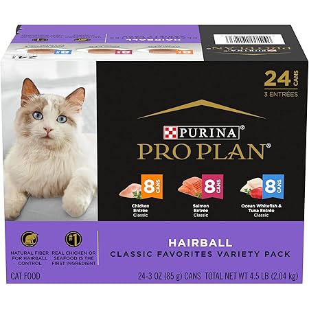 Amazon Com Purina Pro Plan Hairball Control Cat Food Wet Cat Food Variety Pack Hairball Control Entrees 24 3 Oz Cans Pet Supplies